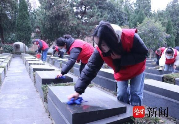 在志愿服务中,志愿者们顾不上天气寒冷,他们纷纷拿起扫帚、抹布等工具,通过扫落叶、擦拭墓碑、烈士墓碑涂红增色等志愿服务,以实际行动缅怀革命先烈,以庄严、整洁的环境寄托哀思、告慰英灵。